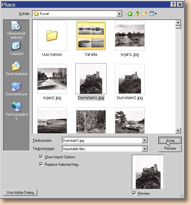 Kuva tuodaan Indesigniin sijoita komennolla: File --> Place: