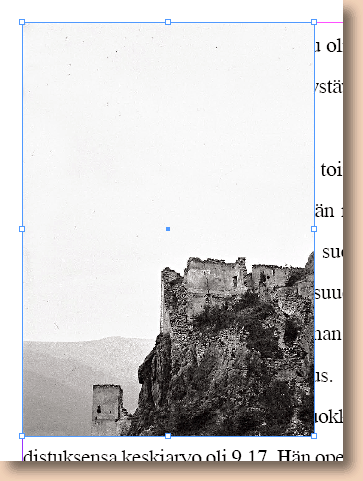 Indesign luo kaikille kuville íkkunan johon kuva sijoittuu. Jos ikkuna on pienempi kuin siinä oleva kuva näkyy kuvasta vain osa. Kuvan voi muuttaa ikkunaan sopivaksi valitsemalla Object --> Fitting --> Fit Content Proportionally: