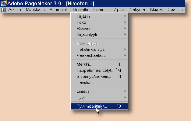 Tekstityyppejä päästään muokaamaan valikosta Muotoilu --> Tyylimäärittelyt: