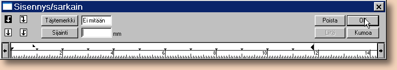 Sarkainasetuksia voi muokata tästä, jos on tarvetta, mutta koska ensirivin sisennyksen pystyi tekemään kappalemäärityksissä, niin sarkain asetuksiin tarvinnee puuttua vain, jos on aikeita laatia taulukoita: