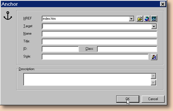 Uuden linkin tekeminen aloitetaan valitsemalla Common-välilehdeltä ankkurin (Anchor) kuva: