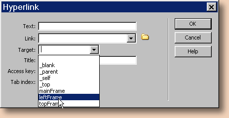 Target rivillä voidaan määritellä sivu aukeamaan omaan ikkunaansa tai määritellä kehystetyssä dokumentissa se, mihin ikkunaan kohde aukeaa. _blank avaa kohteen uuteen ikkunaan, _top nykyiseen ikkunaan syrjäyttäen kaiken sisällön, _parent korvaa nykyisen kehysrakenteen avattavalla dokumentilla ja _self aukasee dokumentin nykyiseen ikkunaan tai kehykseen. Muut määritteet viittavat kehysrakenteen muihin kehyksiin sen mukaan mitkä nimet olet niille antanut.