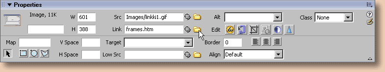 Tai vastaavasti kuvasta voi tehdä linkin Properties-ikkunassa: