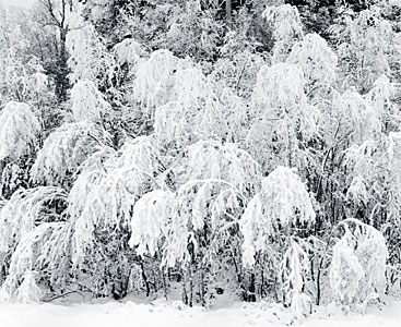 Kari Ennola: Lumisia koivuja, Vaskijärven luonnonpuisto, joulukuu -95. Sarjasta: Kaakkuri ja kurjenpoika